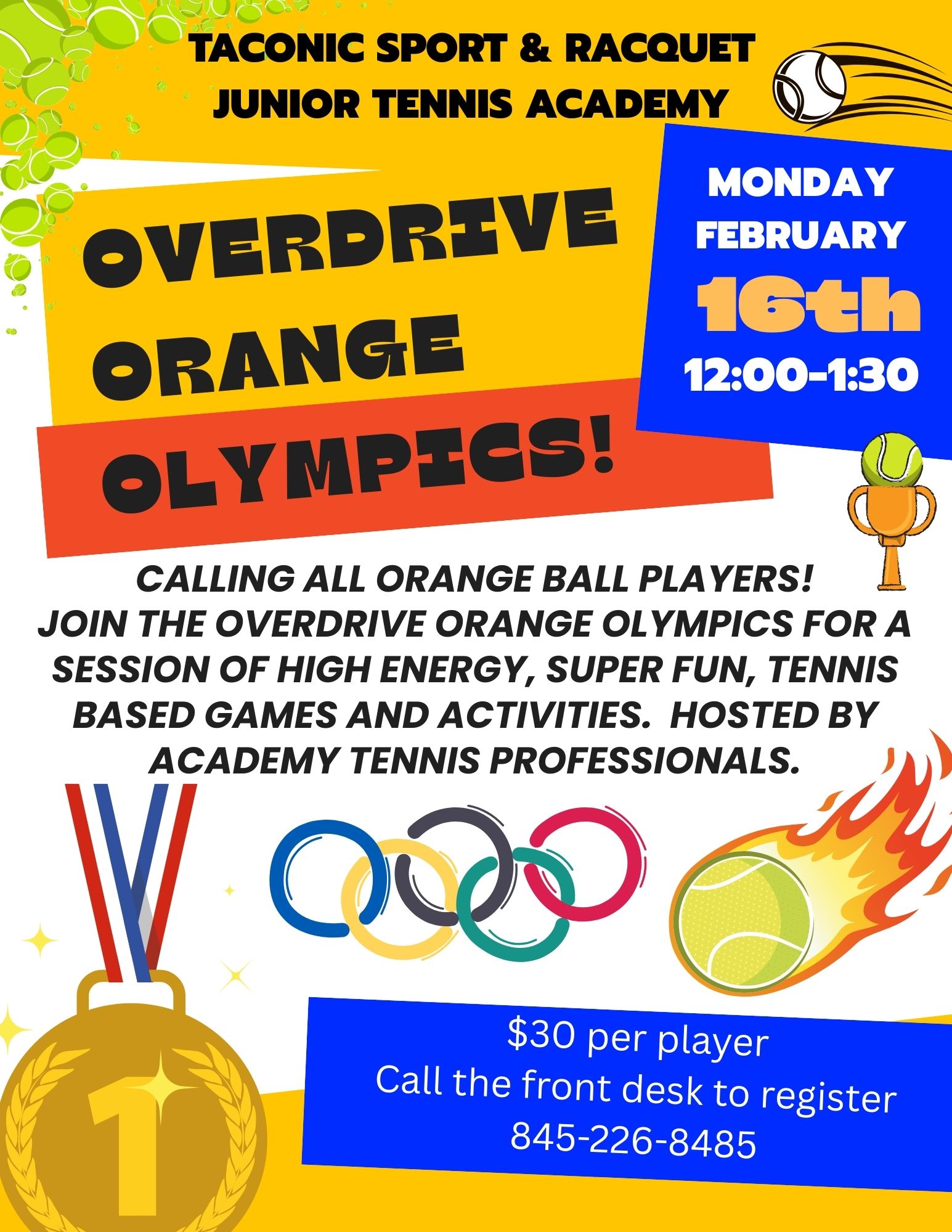 This event is open to all levels of Orange Ball players actively enrolled in the Junior Tennis Academy.